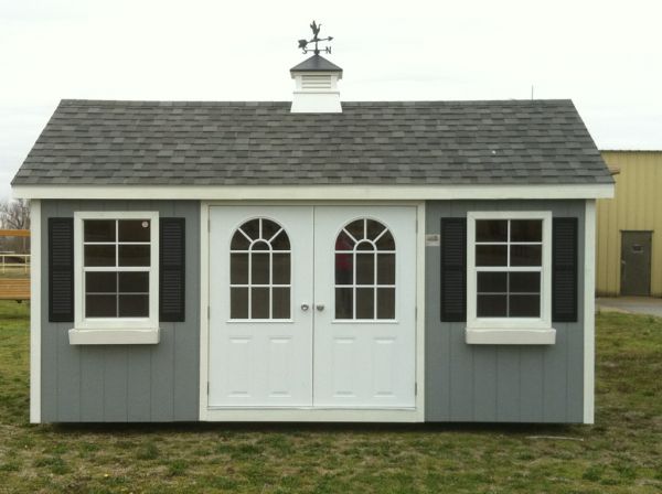 The Elite Series buildings are in a class all of their own! They are not your typical portable building. With their steeper, modern roof pitch and more than adequate roof overhangs on all four sides, The Elite has satisfied the requirements of covenant restricted neighborhoods. Choose your color of 30 year architechural shingles as well as the paint and trim colors. Door options range from Double swing french doors, to the roll-up door, to single entry doors - or all three if you like! Shutters, flower boxes, and even a rooftop cupola are available as options to dress up your building!