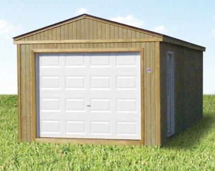 The Garage is designed to be used for storage of heavier items. With its reinforced floor it is up to the challenge of storing a full size vehicle with no problems. It also makes an excellent repair or restoration shop. The Garage comes with 7' 9" sidewalls and 16" OC wall studs. It comes priced with a 9' x 7' high quality metal roll-up door in the gable end as well as a 36" metal door in the side. The most impressive part of The Garage is its floor construction. The floor starts with four treated 4 X 6s as ground contact runners. The floor joists are treated 2 X 6s on 12" centers. Finally, the floor is spanned with 3/4 inch treated plywood.