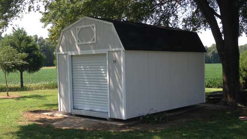 The Lofted Barn offers the most cubic feet of storage for your money. With its 6' 4" sidewalls and the spacious overhead loft you will have room to spare. The loft allows you to store various boxes and other small items in the loft while the floor can be left open for larger items such as lawnmowers, motorcycles, and ATVs. The Lofted Barn comes with your choice of two door types: our high quality metal roll-up door or a 36" metal house type door.