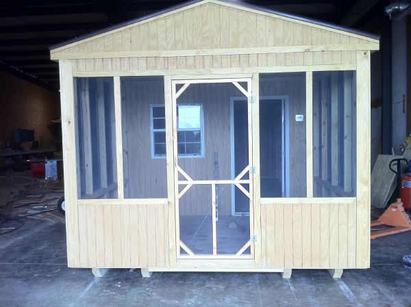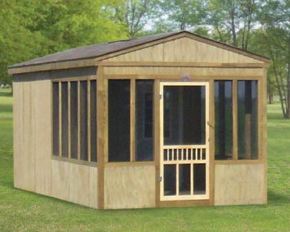 Perfect for a backyard barbecue, a lakeside fishfry, or a place to watch the evening sunset, or whatever you choose to use it for! One thing is for sure, the Screenroom is all about fun. Lots of summer activities are ruined by flies and mosquitos but with a Screenroom from Lanco Buildings you control the outdoors. The Screenroom features an enclosed room at the back with a 36" metal 9-lite door and a window. The room and screen portion can be proportioned to meet your needs. Order yours today!